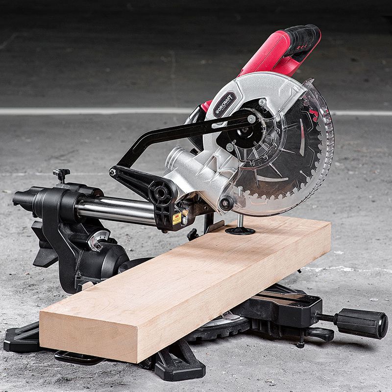 Мінімальні люфти і точне градуювання шкал нахилу пильної головки (до 45° вліво) і повороту робочого столу (до 45° вправо/вліво) сприяють високій точності різів.