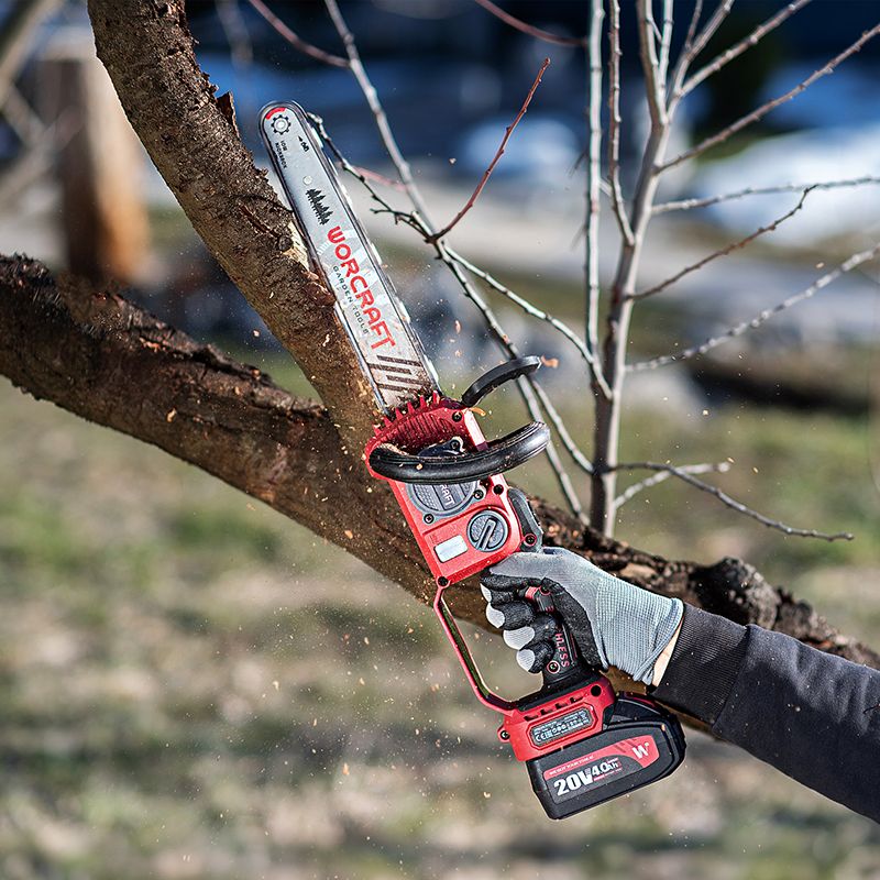 Акумуляторна безщіткова ланцюгова пила WORCRAFT CGC-S20LiBDM — це потужний інструмент для швидкого обрізання гілок, заготівлі дров і ефективного догляду за прибудинковою територією. Подовжена рукоятка забезпечує надійний хват і впевнений контроль під час роботи.