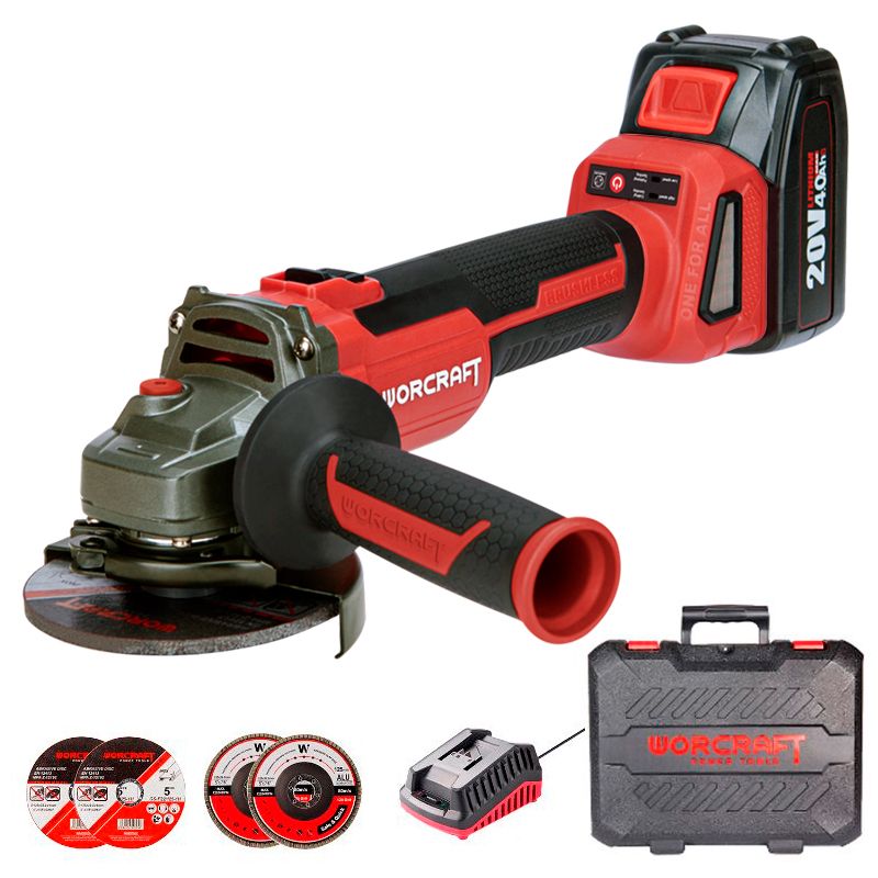 Акумуляторна болгарка WORCRAFT CAG-S20LiBH-125B — потужний та довговічний інструмент, оснащений сучасним безщітковим двигуном з підвищеним моторесурсом і високою енергоефективністю.