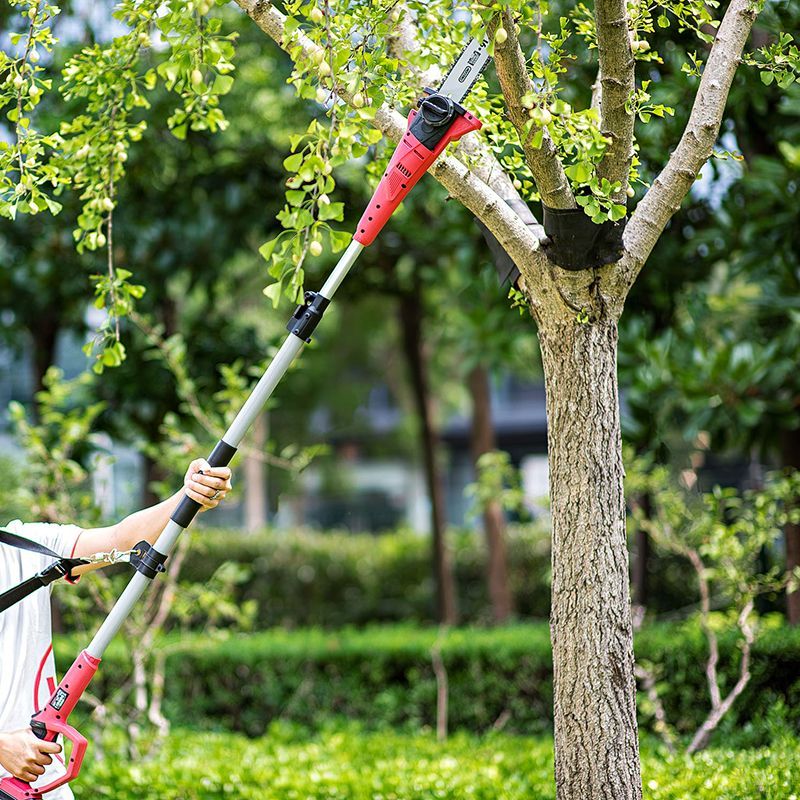 Телескопічна штанга завдовжки до 2,7 м дає змогу легко дотягуватися до гілок на висоті 4-5 метрів, усуваючи необхідність використання сходів.