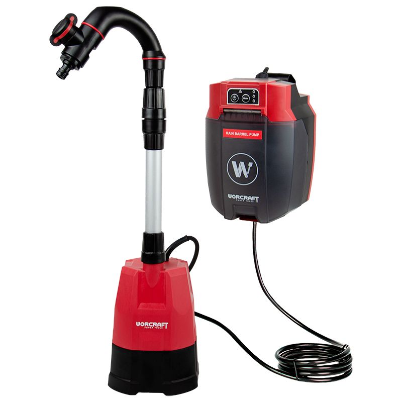 Акумуляторний насос для води WORCRAFT CRWP-S20Li виконує функції заглибного насоса для викачування чистої води і бочкового насоса для поливу рослин.