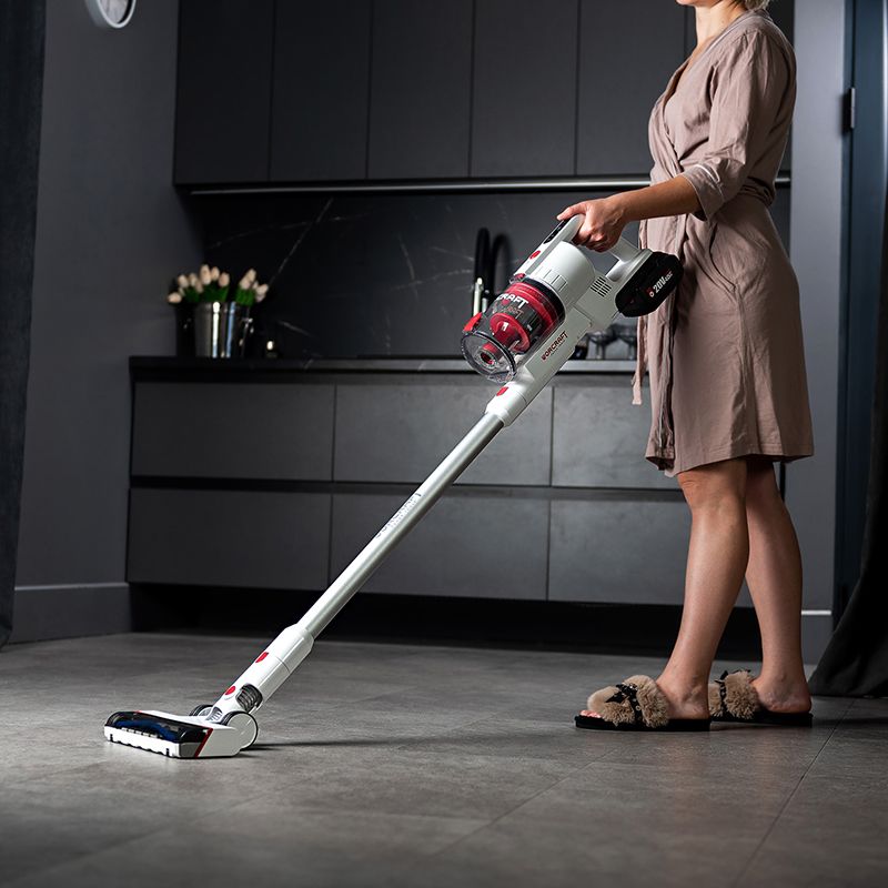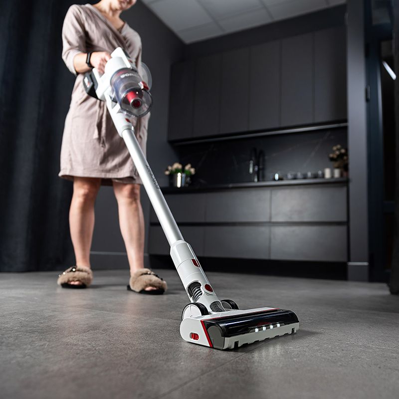 Безщітковий двигун забезпечує потужність всмоктування до 20 кПа і продуктивність 720 л/хв, що дає змогу впоратися навіть із важкими забрудненнями.