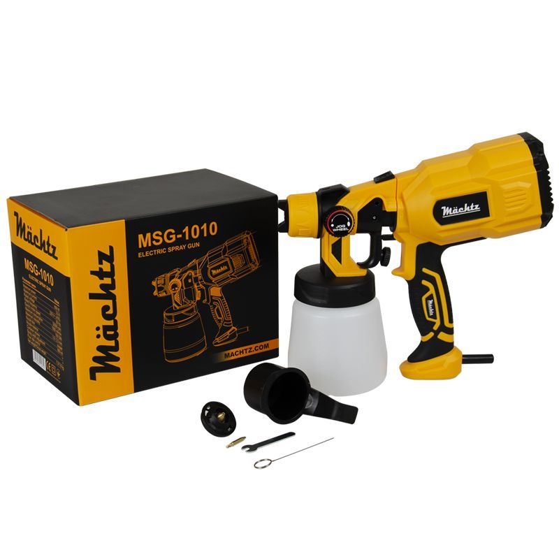 Фарбопульт електричний Mächtz MSG‑1010 — високопродуктивний інструмент, що ідеально підходить для нанесення різноманітних лакофарбових матеріалів, таких як ґрунтовка, емалі, лаки та алюмінієві фарби.