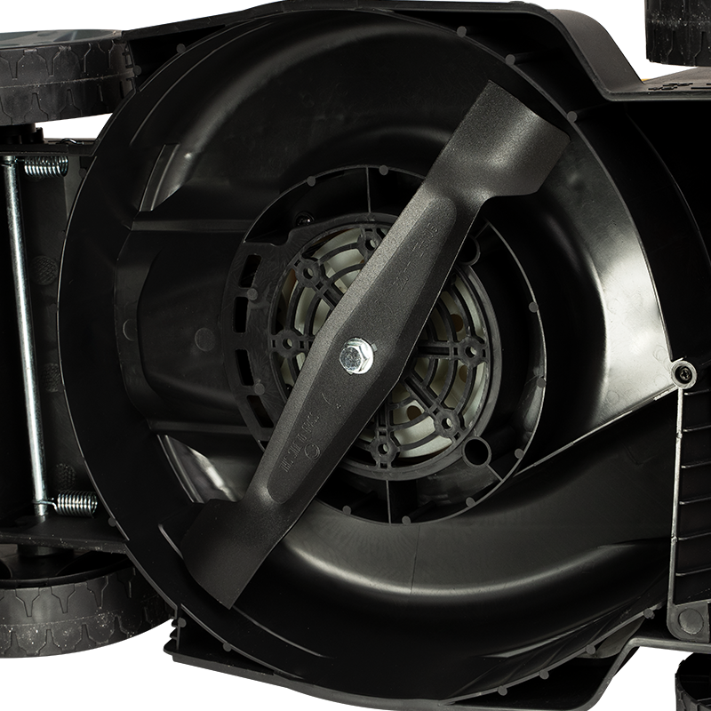 Надійний електродвигун потужністю 1400 Вт генерує високий крутний момент, що дозволяє впевнено працювати з густою та щільною рослинністю.