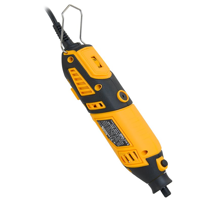 Двигун потужністю 310 Вт забезпечує продуктивну роботу з різними матеріалами, такими як дерево, метал, пластик, кераміка, скло.