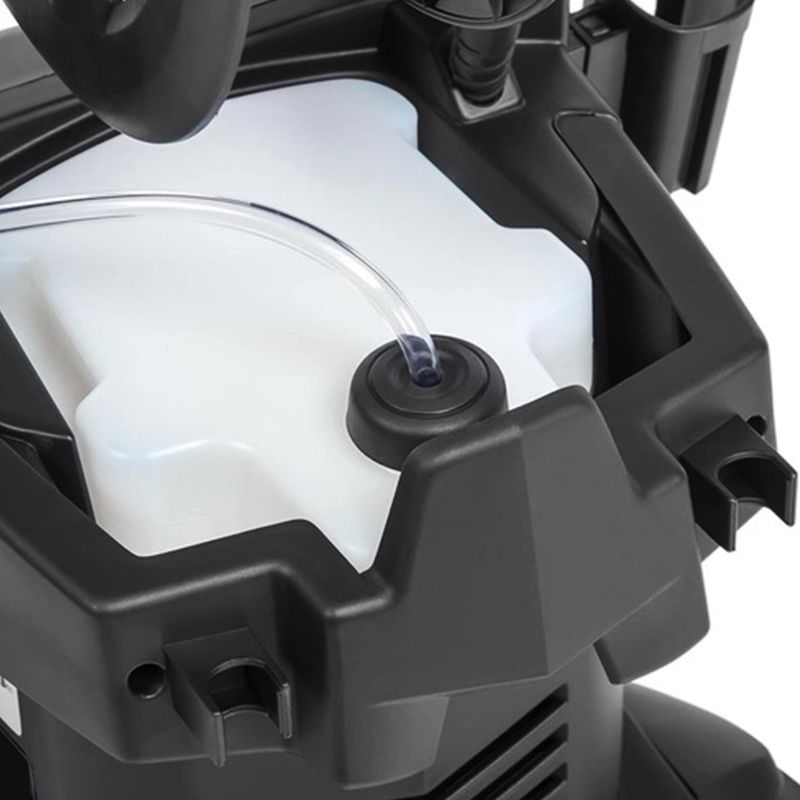 Ємність для мийних засобів вбудована до корпусу мийки. Немає потреби зупиняти роботу, щоб змінити насадки. Подавання піни регулюється за допомогою вбудованої в корпус поворотної ручки.
