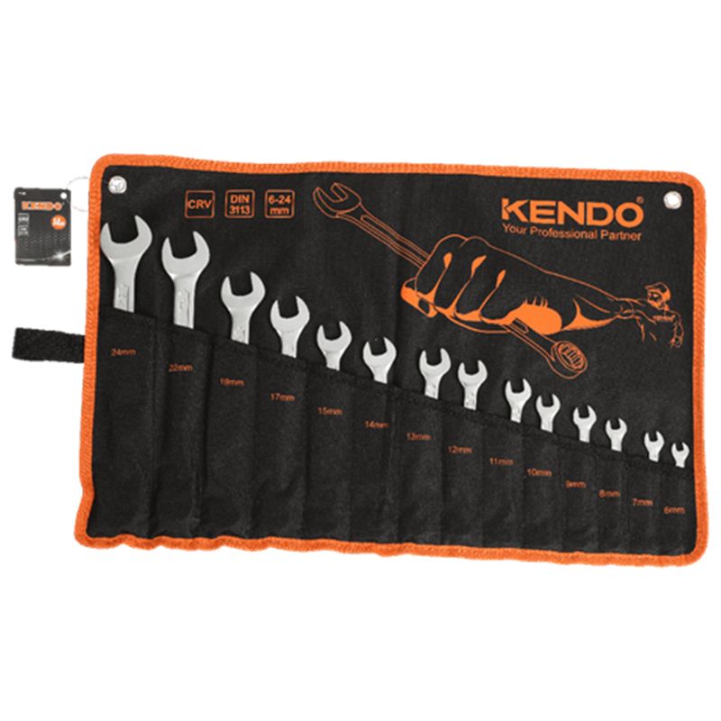 Набір ключів комбінованих гайкових у чохлі KENDO CR-V (14 шт), 6 - 24мм