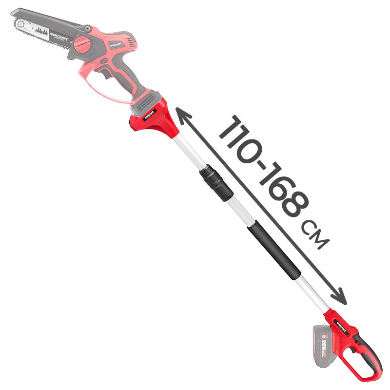 Телескопічний подовжувач WORCRAFT WER001 перетворює пилку WORCRAFT CHS-S20LiBP та секатор WORCRAFT CSC-S20LiBP на потужний висоторіз, дозволяючи безпечно обрізати гілки на висоті 3-4 метрів без драбини, забезпечуючи ефективність садових робіт на професійному рівні.