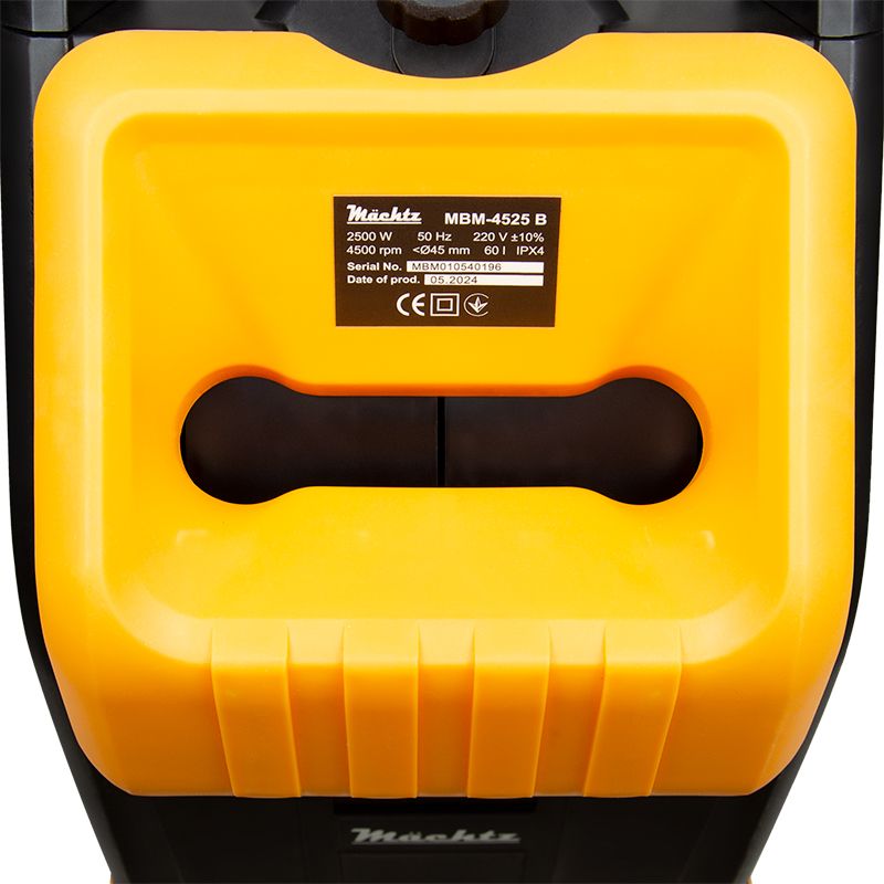 Електричний подрібнювач гілок Mächtz MBM-4525 B дозволяє переробляти гілки та стовбури будь-яких порід деревини діаметром до 45 мм.