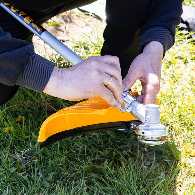 Захисний кожух: Надійно захищає від розльоту трави й дрібного сміття.