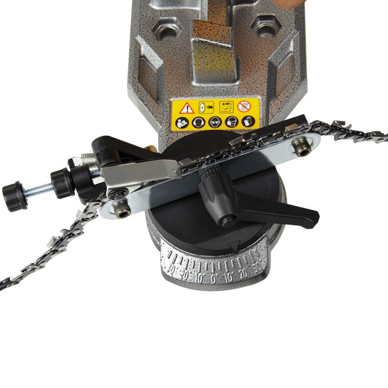 Регульований робочий стіл: широкий діапазон кутів заточування (-35° до +35°) дозволяє адаптувати інструмент до різних типів ланцюгів.